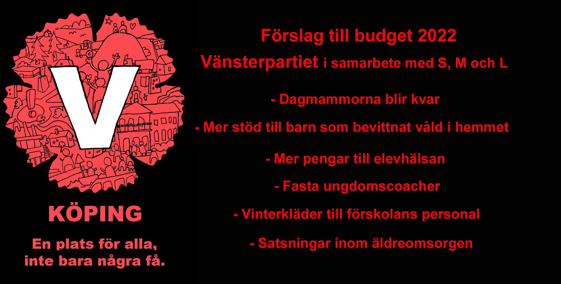 Vänsterpartiet i Köping har idag varit med och lämnat in budget för 2022 i Köpings kommun.